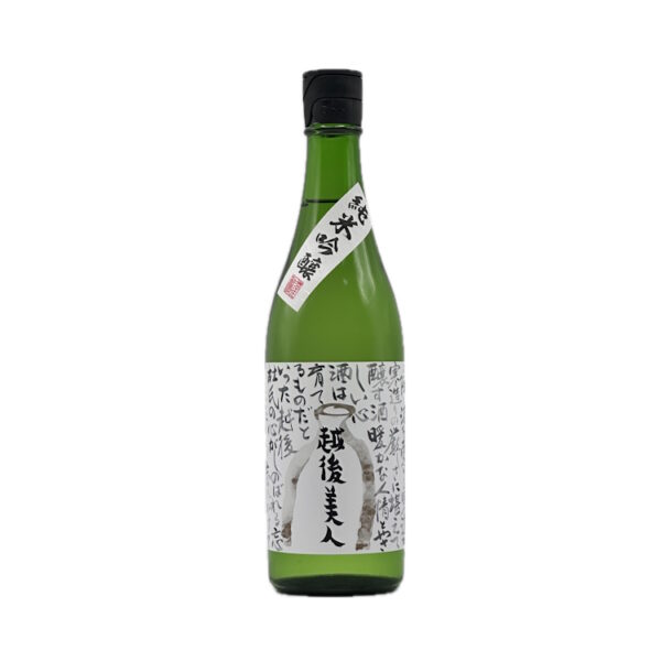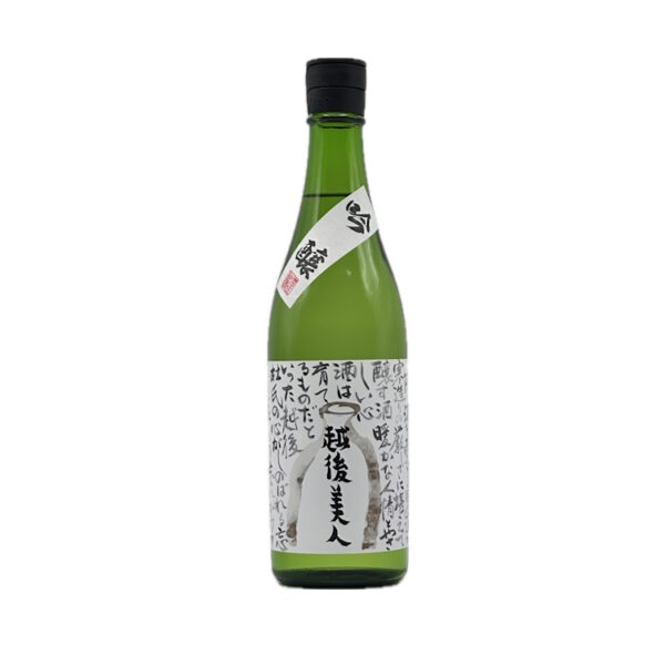 新潟県産米の「越淡麗」と「五百万石」を使用し、精米歩合50%で造りました。ラベルの『越後美人』の文字が鏡文字の理由は…当蔵にお問い合わせください。